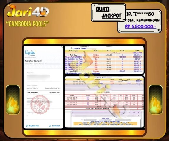 Bukti JP CAMBODIA 4D POOLS Hari ini Di Situs JARI4D Sebesar Rp.6.500.000,- Tuntas !!