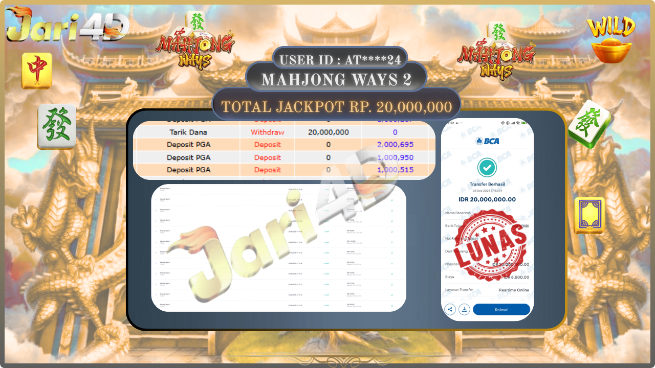 Bukti JP MAHJONG WAYS 2 Hari ini Di Situs JARI4D Sebesar Rp.20,000,000,- Tuntas !!