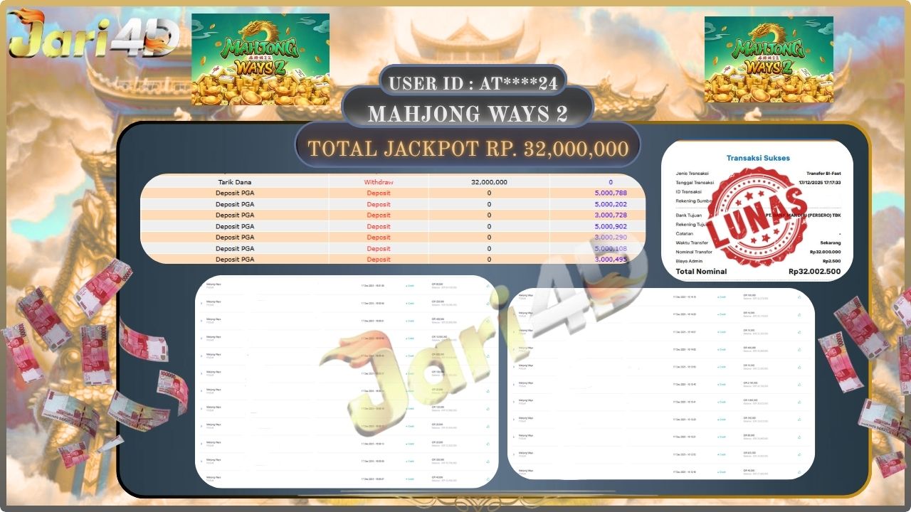 Bukti JP MAHJONG WAYS 2 Hari ini Di Situs JARI4D Sebesar Rp.32,000,000,- Tuntas !!