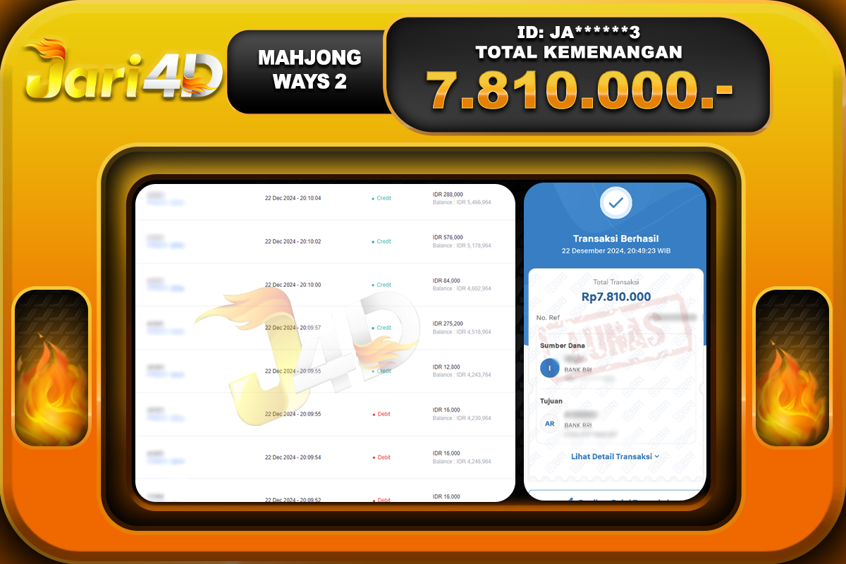 Bukti JP MAHJONG WAYS 2 Hari ini Di Situs JARI4D Sebesar Rp.7.810.000,- Tuntas !!