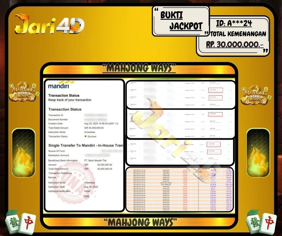 Bukti JP MAHJONG WAYS Hari ini Di Situs JARI4D Sebesar Rp.30.000.000,- Tuntas !!