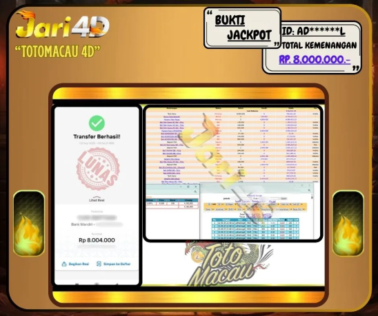 Bukti JP TOTOMACAU 4D Hari ini Di Situs JARI4D Sebesar Rp.8,000,000,- Tuntas !!