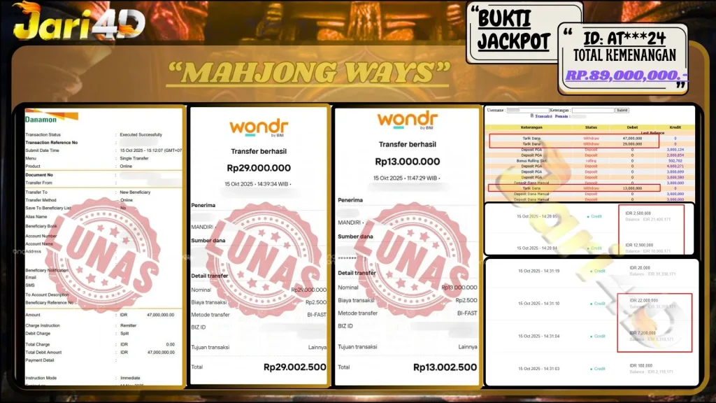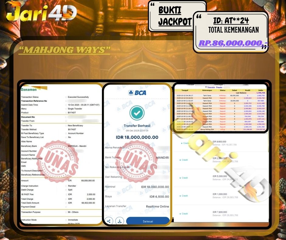 Bukti Withdraw Kemenangan Jackpot Di Situs Jari4D Jari4d Merupakan Situs Judi Online Togel , Slot , Livecasino Resmi Paling Terpercaya Sepanjang Tahun Sampai Saat Ini 2025. Jari4D Juga Merupakan Situs Online Dengan Licensi Kemenangan Jackpot Berapapun Pasti Di Bayar Tuntas !!! Tanpa Sedikit-Pun Basaa Basi Dari Pihak Web Dan Management Withdraw Jari4D. Kemenangan Berapapun […]