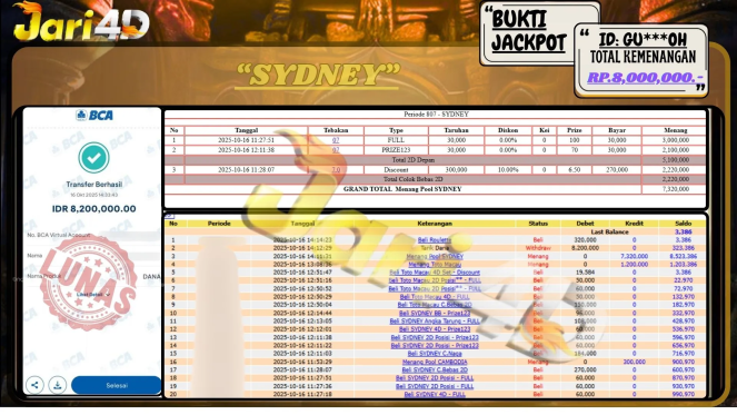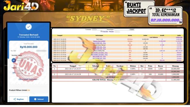 Bukti JP SYDNEY Hari ini Di Situs JARI4D Sebesar Rp.6,500,000,- Tuntas !!