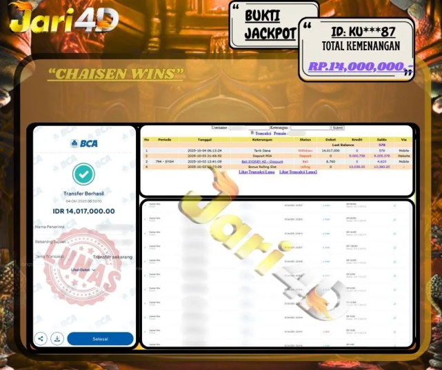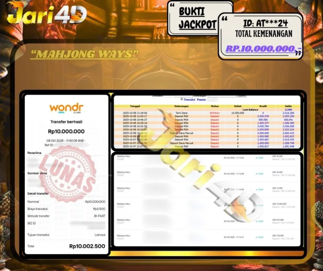 Bukti Withdraw Kemenangan Jackpot Di Situs Jari4D Jari4d Merupakan Situs Judi Online Togel , Slot , Livecasino Resmi Paling Terpercaya Sepanjang Tahun Sampai Saat Ini 2025. Jari4D Juga Merupakan Situs Online Dengan Licensi Kemenangan Jackpot Berapapun Pasti Di Bayar Tuntas !!! Tanpa Sedikit-Pun Basaa Basi Dari Pihak Web Dan Management Withdraw Jari4D. Kemenangan Berapapun […]