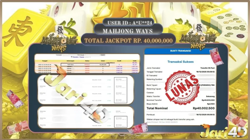 Bukti Withdraw Kemenangan Jackpot Di Situs Jari4D Jari4d Merupakan Situs Judi Online Togel , Slot , Livecasino Resmi Paling Terpercaya Sepanjang Tahun Sampai Saat Ini 2025. Jari4D Juga Merupakan Situs Online Dengan Licensi Kemenangan Jackpot Berapapun Pasti Di Bayar Tuntas !!! Tanpa Sedikit-Pun Basaa Basi Dari Pihak Web Dan Management Withdraw Jari4D. Kemenangan Berapapun […]