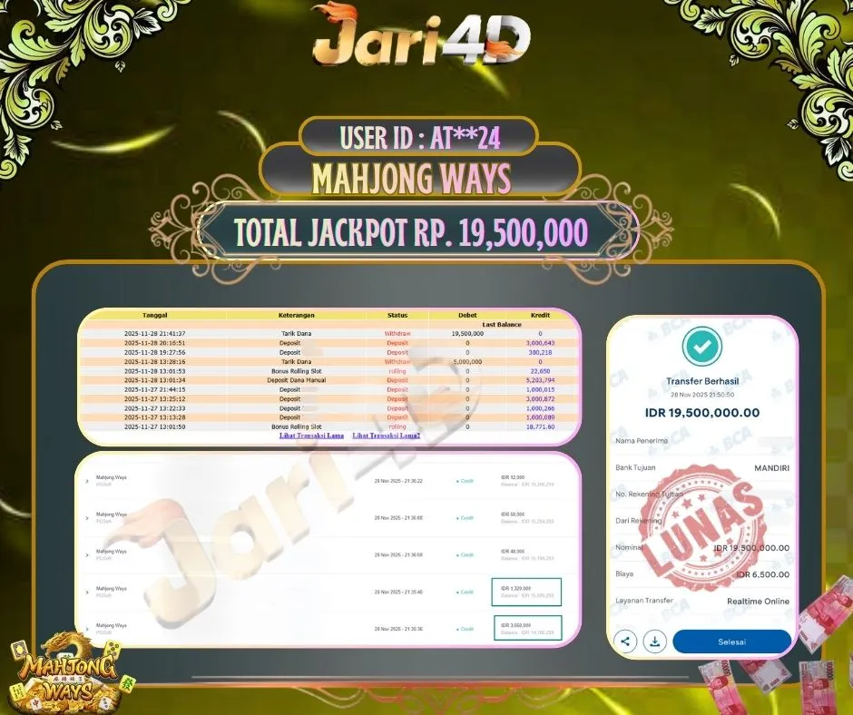 Bukti Withdraw Kemenangan Jackpot Di Situs Jari4D Jari4d Merupakan Situs Judi Online Togel , Slot , Livecasino Resmi Paling Terpercaya Sepanjang Tahun Sampai Saat Ini 2025. Jari4D Juga Merupakan Situs Online Dengan Licensi Kemenangan Jackpot Berapapun Pasti Di Bayar Tuntas !!! Tanpa Sedikit-Pun Basaa Basi Dari Pihak Web Dan Management Withdraw Jari4D. Kemenangan Berapapun […]