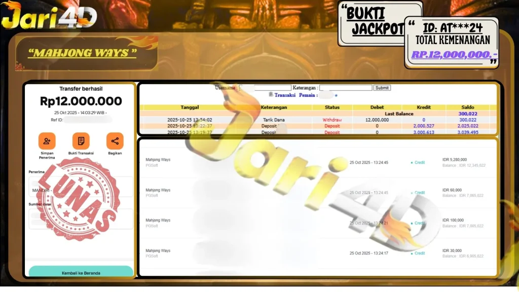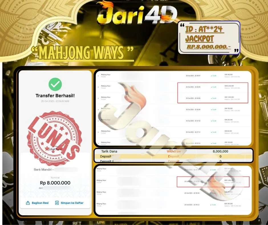 Bukti JP MAHJONG WAYS Hari ini Di Situs JARI4D Sebesar Rp.8,000,000,- Tuntas !! Read More »