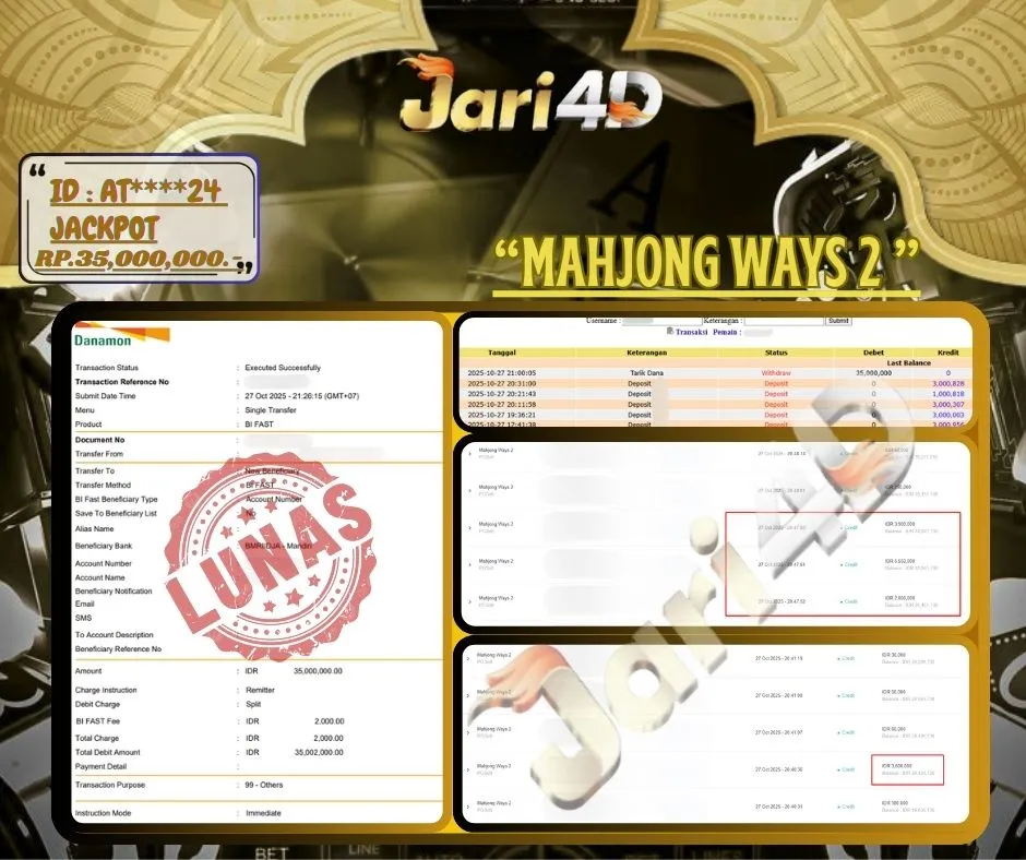 Bukti Withdraw Kemenangan Jackpot Di Situs Jari4D Jari4d Merupakan Situs Judi Online Togel , Slot , Livecasino Resmi Paling Terpercaya Sepanjang Tahun Sampai Saat Ini 2025. Jari4D Juga Merupakan Situs Online Dengan Licensi Kemenangan Jackpot Berapapun Pasti Di Bayar Tuntas !!! Tanpa Sedikit-Pun Basaa Basi Dari Pihak Web Dan Management Withdraw Jari4D. Kemenangan Berapapun […]