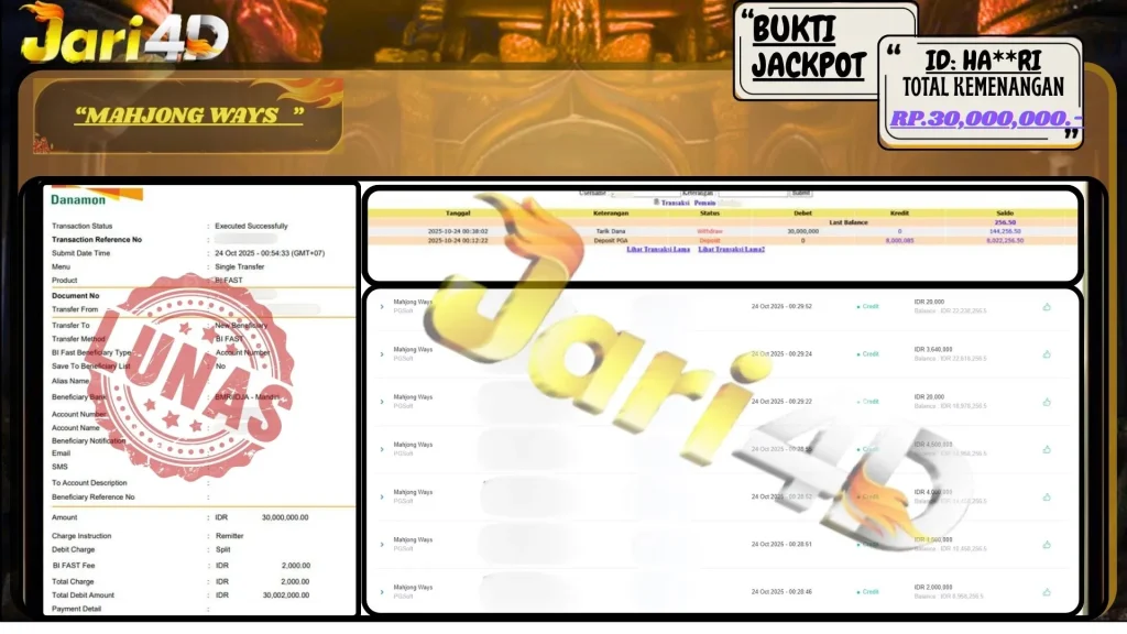 Bukti JP MAHJONG WAYS Hari ini Di Situs JARI4D Sebesar Rp.40,000,000,- Tuntas !!